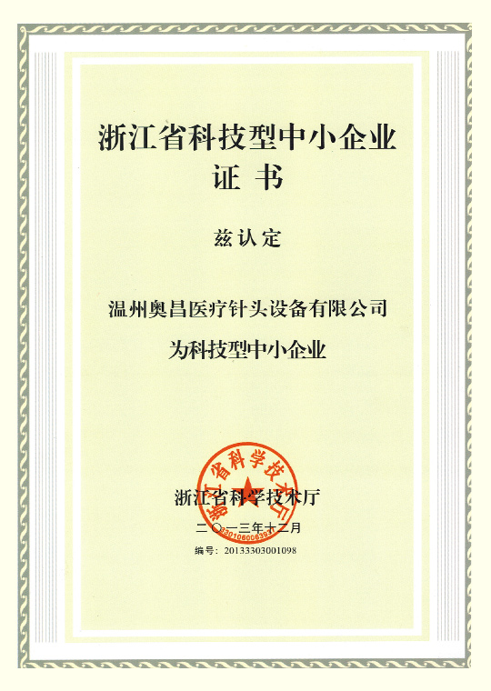 Since its establishment, the company has devoted itself to the development of comprehensive and quality sets of medical needle equipment, for which it won multiple patents in 2012, and was rated a Wenzhou (innovative) technology-based enterprise.